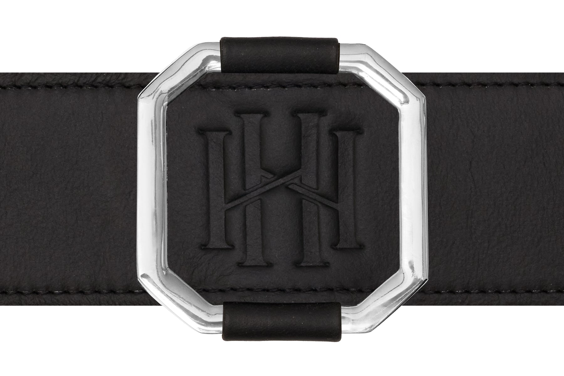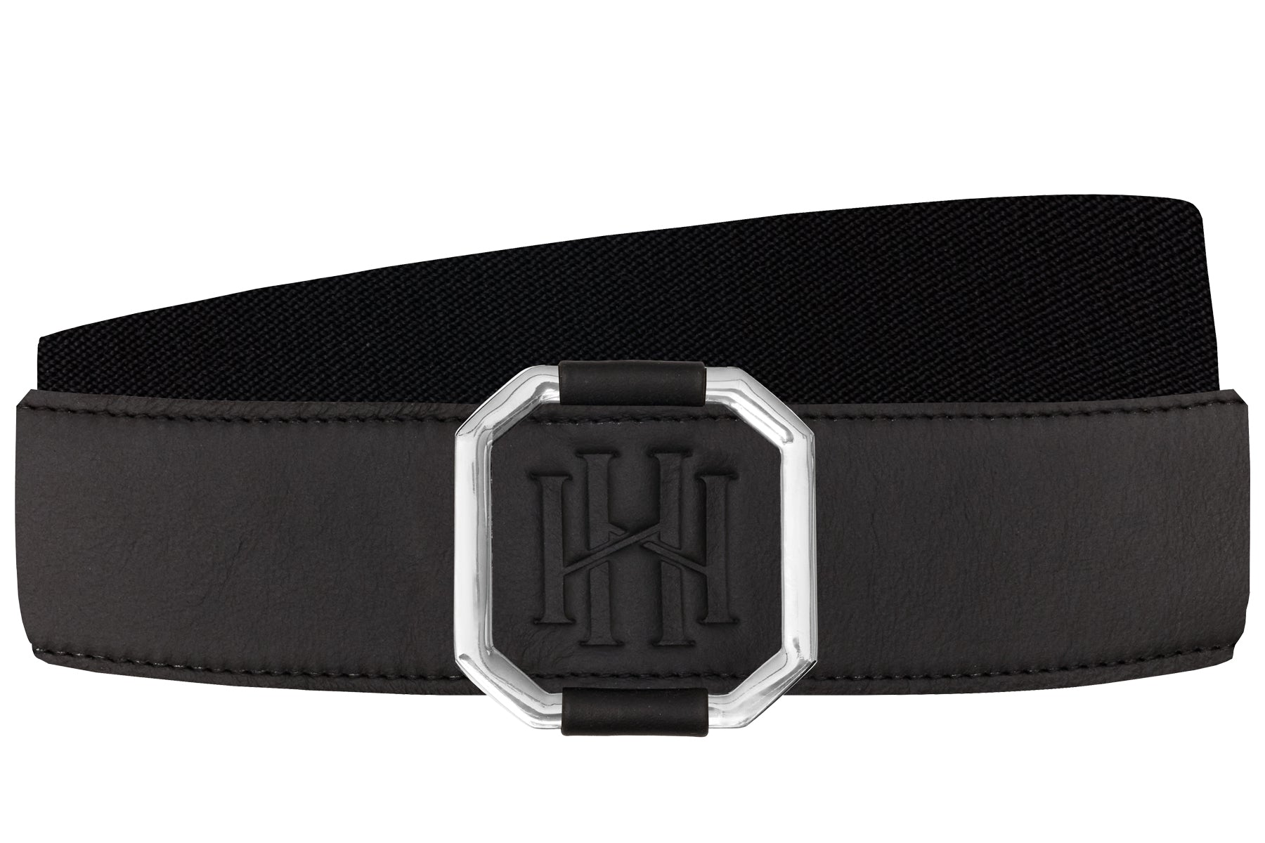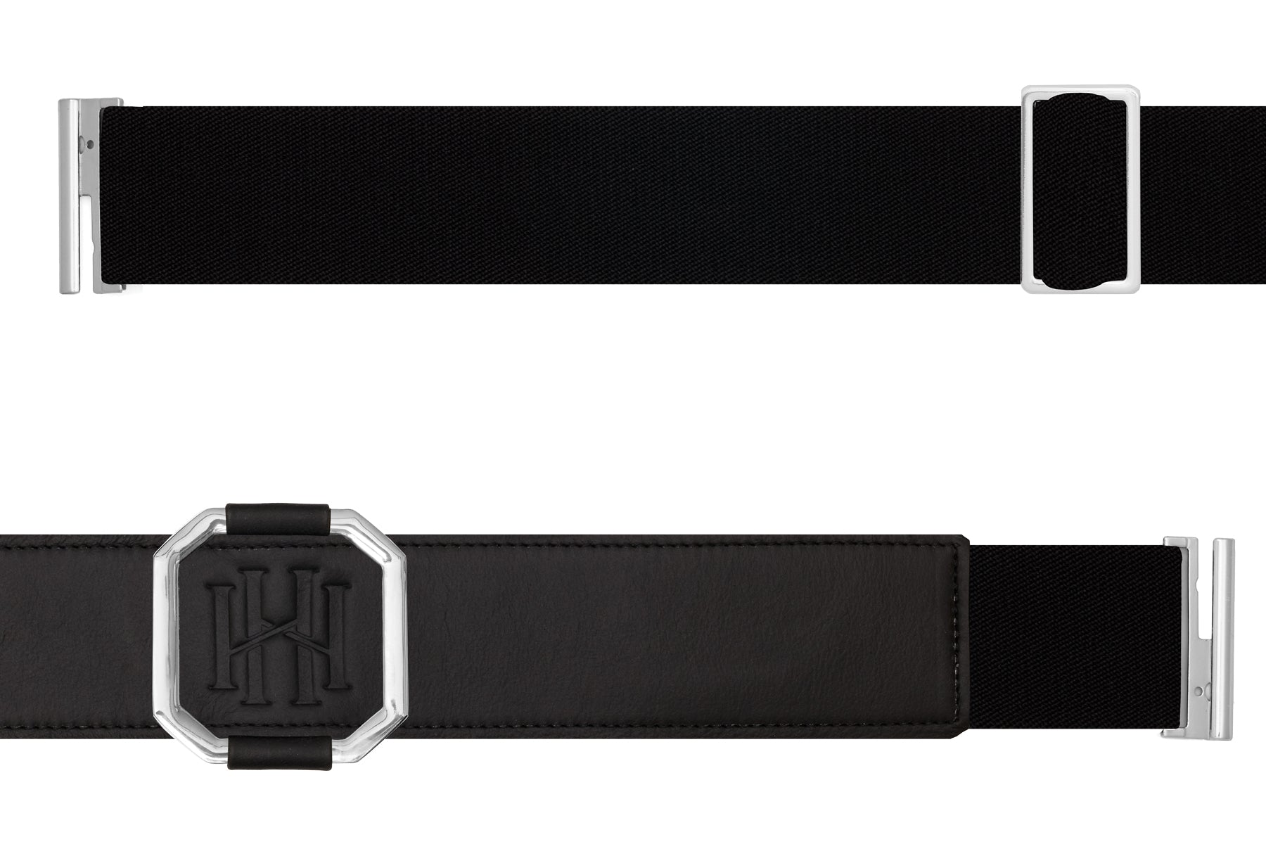 Eclipse Equestrian Belt- Rhodium Frame - Black Leather with Black Band- RM